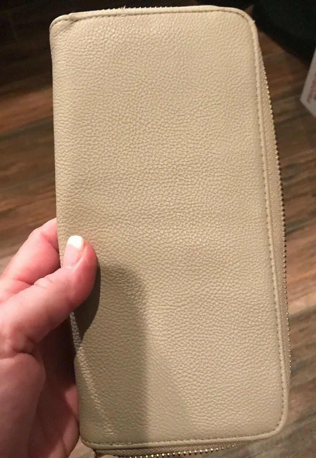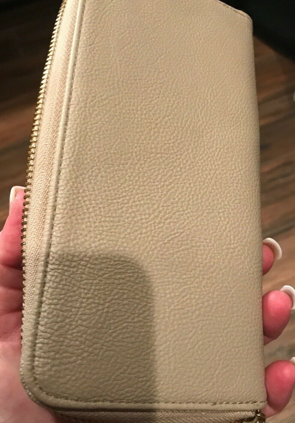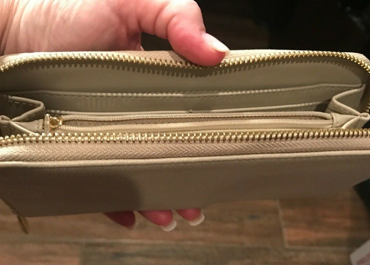 Gorgeous credit card wallet 8 inches wide and 4 inches tall...12 credit card slots plus zippered middle pocket Slim style ready to use. Veggie leather Nice size requires small box priority mailing