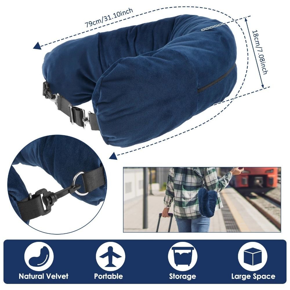 Color: Black,Blue,Gray,Pink Material: Velvet Special Feature: Adjustable,Transformable Size: 80*18cm(31.50*7.09in) Package Includes: 1pc Stuffable Travel Pillow [MULTIFUNCTIONAL TRAVEL PILLOW] This uniquely designed travel pillow combines free extra luggage and travel neck pillow, saving up excess luggage fees and optimizing packing efficiency. Allowing you to organize and carry your luggage smarter. [NO FILLER DESIGN] To make your travels easier, our neck pillow case for travel is designed as stuffable. You can pack with the pillow up to 3 days of clothes and avoid that extra checked luggage. Say Goodbye to excess luggage charges. [COMFORTABLE VELVET MATERIAL] The pillow cover made of soft and high quality velvet material, provide you a comfortable touch for a blissful travel experience. Enjoy plush neck and lumbar support on airplanes, car and trains trip. [SPACE-SAVING] Come with adjustable additional shoulder strap, convenient for you to take your travel pillow on your shoulder or strap it to your suitcase. Whether you are embarking on a weekend getaway, a camping adventure, or a budget-friendly air travel, this pillow helps to maximize your luggage space.