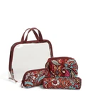 Brand New With Tags Vera Bradley 4 PIECE COSMETIC ORGANIZER Travel Toiletry Set You Can Choose From Patterns Listed: Coral Floral, or Regal Paisley Sometimes when you go on a trip, you have a lot of smaller items to corral. This set of cosmetic bags is there for you so you can keep your hair ties tidy and your cosmetics contained. Perfection! Clear PVC cosmetic contains three smaller cotton cosmetics PVC over logo lining Zip closures. Cosmetic 1 dimensions: 6.25" w x 5.25" h x 3.50" d Cosmetic 2 dimensions: 6.50" w x 3.50" h x 2.50" d Cosmetic 3 dimensions: 8.25" w x 2.00" h x 2.00" d Dimensions: 8.25" w x 10.75" h x 4.00" d with 3.25" handle drop See pictures for more item details. This item comes from a smoke free home. Trusted Seller-Fast Ship!