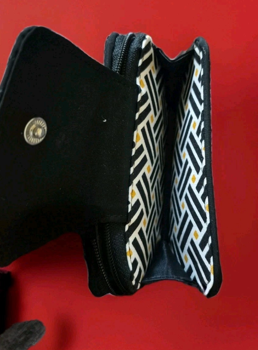 This stylish and practical Vera Bradley wristlet wallet is perfect for on-the-go use. Crafted in a classic black quilted pattern, it offers functionality and security. Key Features Brand: Vera Bradley Color: Classic Black Style: All-In-One / Wristlet Wallet Material: Durable cotton blend or microfiber outer material Hardware: Gold-tone metal Vera Bradley logo plate and zipper pull Closure: Zip-around main compartment and a snap closure flap for the phone/card section Security: Features RFID (Radio Frequency Identification) protection to help keep personal information secure Organization: Multiple interior card slots, ID window, bill/cash compartments, coin pocket, and a dedicated phone holder section Portability: Includes a detachable wrist strap for convenience Condition: Like New