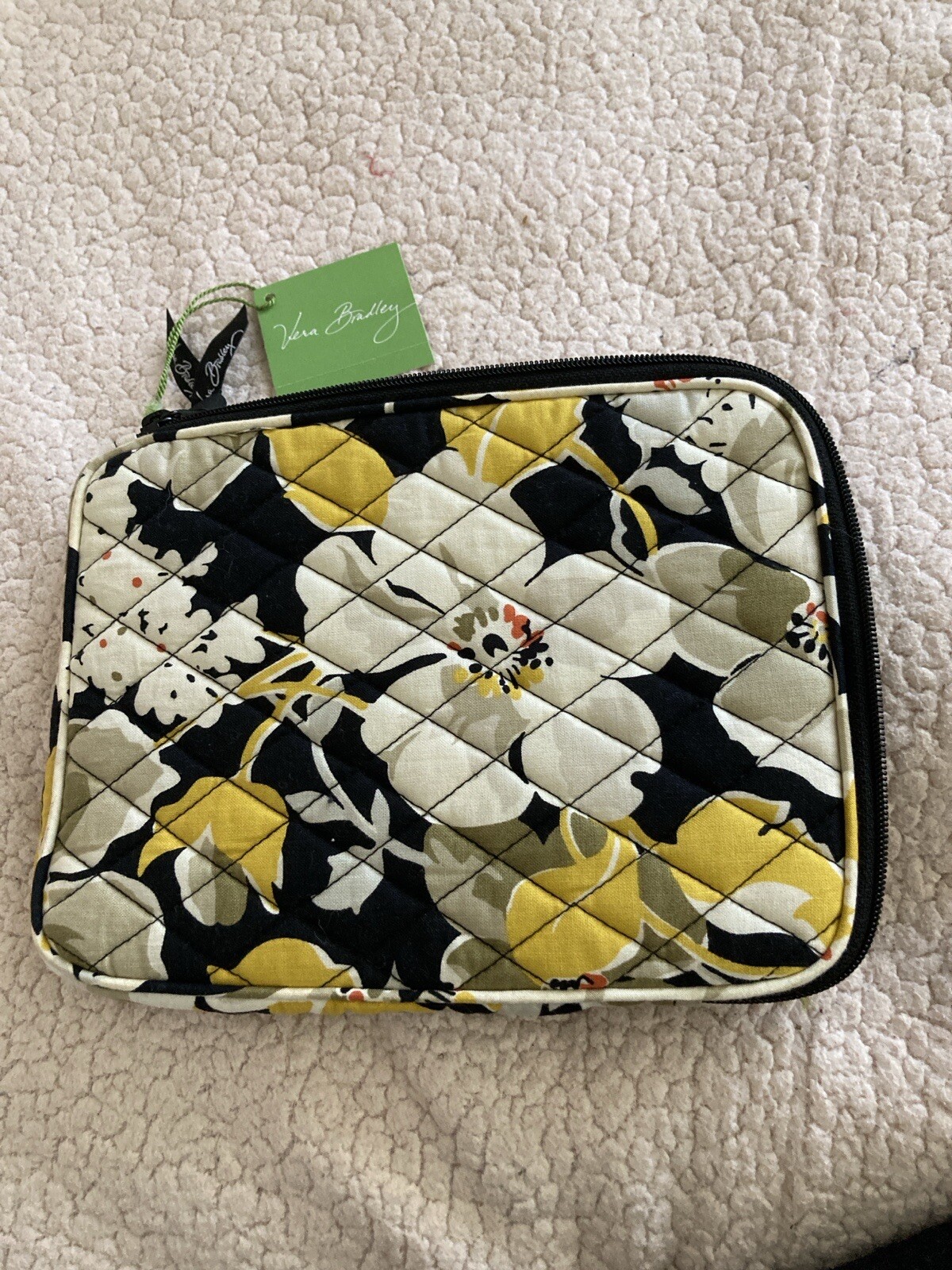 This sleek Vera Bradley E-Reader Sleeve in the beautiful Dogwood pattern is perfect for keeping your e-reader safe and stylish. With a zip closure and small size (9" x 7" x 1"), it's easy to toss in your bag and go. The black hardware and multicolor floral exterior are complemented by a white and black patterned interior lining. This vintage-inspired sleeve is part of the Vera Bradley E-Reader Sleeve product line and is brand new with tags. Though it may be small, it's big on style and practicality.