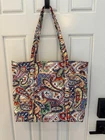 The Vera Bradley Large Tote Bag with Zipper in the Harbor Paisley pattern is a stylish and spacious handbag perfect for women on the go. Made from durable cotton material, this multicolor tote features a classic paisley design that adds a touch of flair to any outfit. With a convenient zipper closure and comfortable size, this bag is both fashionable and practical for carrying all your essentials in style. 18”w x 14”t Strap length 12”