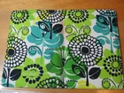 Pattern: Limes Up Retired: Yes Bag Style: Folding Carry Travel E-Reader / Tablet cover Bag Height: 9 inches Bag Width: 5 inches when closed, 11 inches when opened flat Bag Depth: 1 inches across the spine Strap Length: No strap Outside Pockets: None Inside Pockets: One inside slide pocket. Also has 4 pieces of elastic to hold the tablet and these measure 7 inches tall and around 5 inches across Signs of Wear: Shows some use and dirt, but not very much, from being carried. Could be spot cleaned, I think, but I didn't try. A 3 on the scale. Rating (see below for description): I use the following rating system to determine amount of wear, way the bag looks, feels, how close to new, etc. Bags are priced according to their look and feel: 1 = Bag looks and feels new, does not feel as though it has been carried much, if at all. Fabric is still stiff, with no stains. Handles and bottom edges show no signs of wear. 2 = Bag shows minimal signs of wear and use. Fabric is still stiff, but feels as though it has been carried. No dirt or stains on bag. Handles and bottom edges still look new. 3 = Bag shows moderate signs of wear and use. Fabric softer, shows signs of having been used and carried. Could possibly have small amount of dirt on bag (see description for details). Handles may show some wear, but are still whole and look good. Bottom edges of bag may show some wear but are not worn through. 4 = Bag shows wear and use. Handles and bottom edges are worn with some dirt showing. Sides of bag shows dirt. If stains are on bag, these will be pictured above. Fabric feels softer due to use, possibly washing. 5 = Bag shows substantial use and wear. Both handles and bottom edges show signs of use (see pictures above). Bag may show dirt on handles, bottom, and sides (see pictures above) - OR - Bag may have been washed, which will be evident and mentioned above.