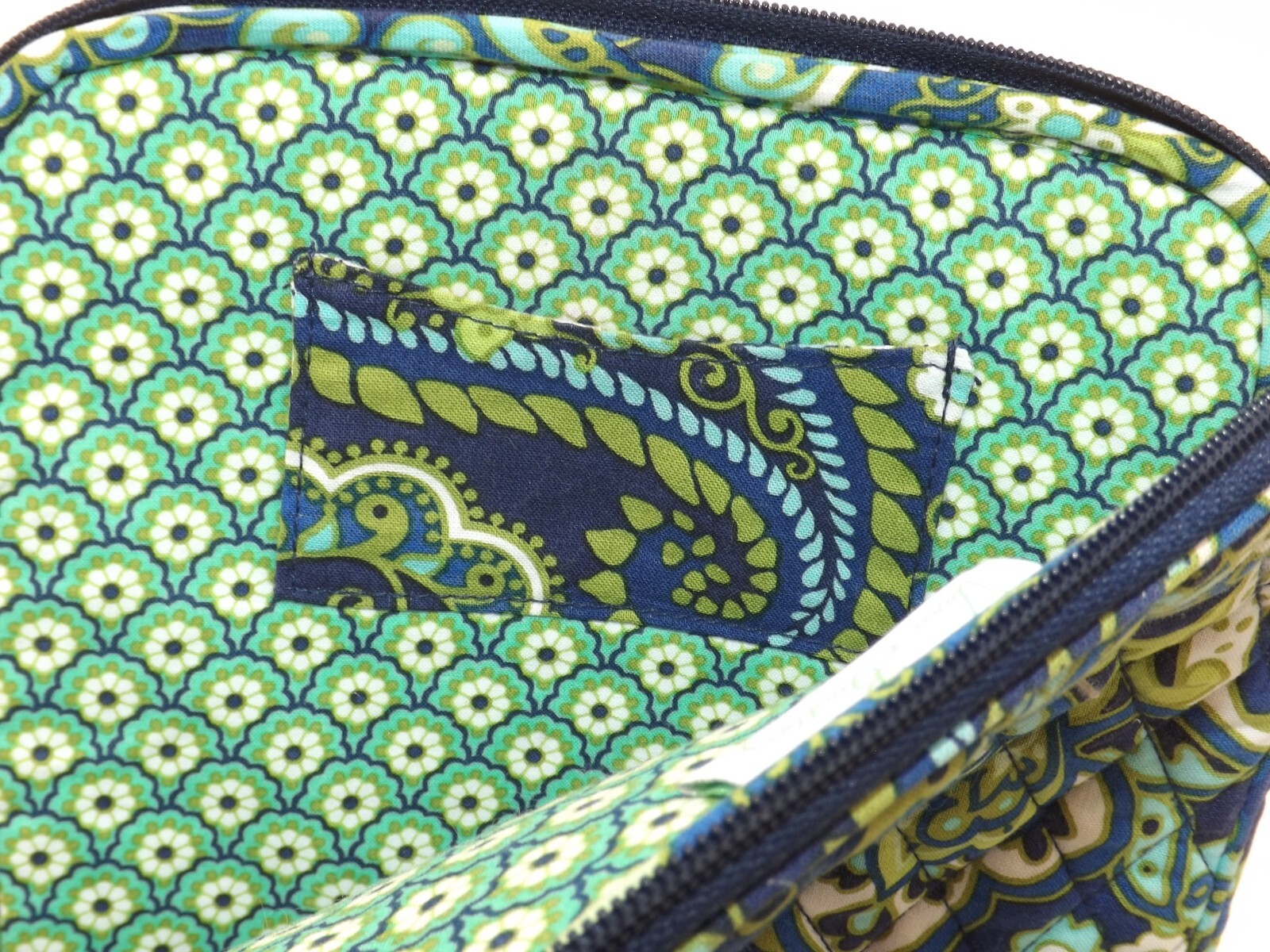 Vera Bradley Rhythm & Blues Retired Tablet EReader Sleeve Sleeve is in good condition overall Measures approximately 10" x 8.5" This has a small inner pocket Blue, green and white colors