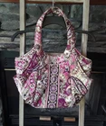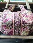 Beautiful Very Bradley Very Berry tote! Good size bag with large side pockets perfect for large water bottles. Bag is 100% cotton with lovely paisley pink and purple design. Interior has multiple pockets for your cellphone, key, glasses ect. This is a great bag overall. Has minor discoloration on inside under zipper.