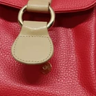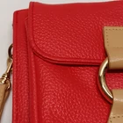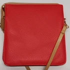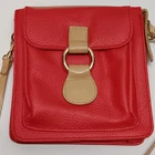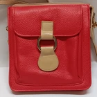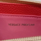 Versace Fragrance Profumi Crossbody Bag Red Beige Pebbled Faux Leather Authentic This crossbody bag is in good pre-owned condition with minimal signs of wear. There are a few ink spots on the outside of the bag as shown in the photos. Measurements of bag are 7" W x 7" H x 1" Deep. Strap is currently set to 21" Ships in a box. Same day shipping Thanks for shopping TKO Specialties
