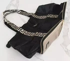 Versace Parfums Tote Shopper Travel Bag Chic, stylish and unique bag folds up into a packable case. Ideal for travel when you need a way to carry those last minute purchases! Color: Black body & gold faux leather bottom Iconic Greca key design in gold Versace Parfums faux leather plaque at front Double carry rolled handles for comfort Lightweight yet durable Gold-tone hardware Top zip opening One main compartment 2 interior slip pockets Fully lined black fabric with Versace Parfums signature logo Body Material: 100% Polyester Lining: 100% Polyester Base: Faux Leather (100% PU) Approximate Measurements (tote): 13.25" W (at base) x 12" H x 7.25" D (at base) Hand Strap Drop: 10" Approximate Measurements (collapsed case): 7.25" W x 6.5" H x 1.25" D Brand New With Tags Branded black storage/dust bag Original sealed manufacturer’s packaging Limited Edition Made exclusively for Versace Parfums Guaranteed authentic Versace Bag is collapsed for shipping Gift with Purchase GWP products such as fragrances, cosmetics, skin care, tote/travel bags, etc. are often labeled ‘Not for Sale’. The ‘Not for Sale' term is an agreement between the manufacturer and retailer and does not apply to eBay sales. Product or packaging may include phrase: Not for Individual Sale, Promotional Item Gift, Gift with Purchase, Not for Sale, Free Sample, etc. All sales are final. No returns or cancellations. Check my feedback and buy with confidence.