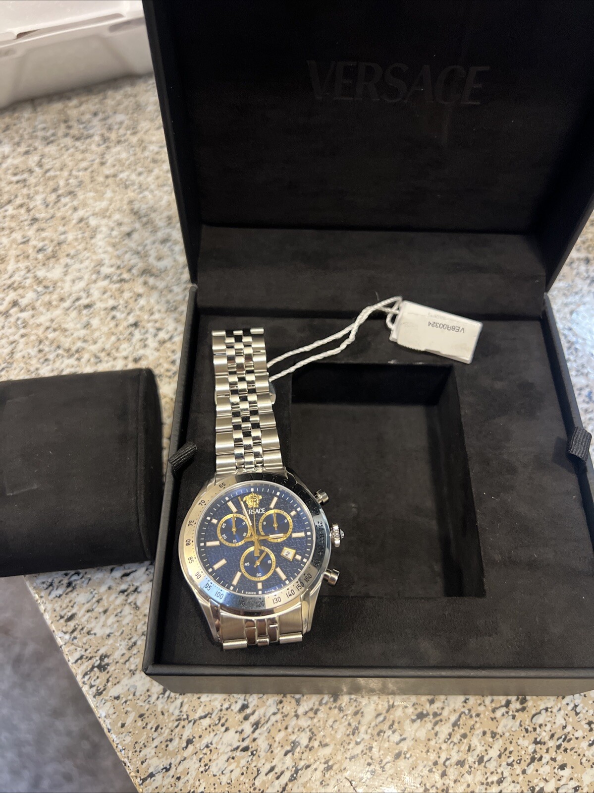 This Versace men's watch is sleek and stylish, perfect for any occasion. The quality is top-notch, and it arrived brand new with tags still attached. Shipping was fast and secure with USPS. Definitely a great addition to any collection—love the bold design and premium feel!