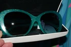 Versace Woman Cat Eye Sunglasses Like NEW!!!! It is Authentic Versace Emerald Green Frame with Glitter! It is AMAZING!!!! Believe me!!! I paid 3 years ago - $ 680.00!!!! Made in Italy, Glitter changing color from light! Lens - green - blue. No scratches, EXELLENT condition!!! I don't accept return, please ask question free! Please see all pic, need more? Contact me! Fast shipping with signature confirmation! Only US buyer. Don't miss - they are Rare and can't find! Thank you for looking!!!!!!! White tag was removed to wear them for photoshoot.