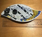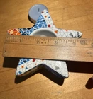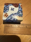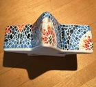 This Colorful Lot Of 3 Gaudi Style Trencadis Spanish Mosaic Porcelain Pieces includes a square trinket box, a tea light candle holder and a leaf shaped trinket dish. Condition for all three pieces is like new with no chips or cracks.