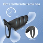 $ 8.98APP Vibrating Double Penetration Cock Ring Anal Sex Slim Dildo Dong Butt Plug