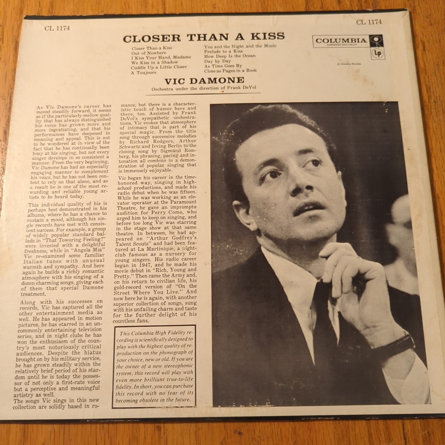 Vic Damone, Closer Than A Kiss; CL 1174 Columbia LP