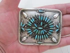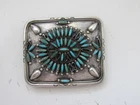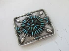 Sterling Silver Turquoise Belt Buckle Weighs 50 Grams, Stamped VMB Missing some Turquoise stones FOR COSMETIC CONDITION SEE ALL PICTURES SALE AS-IS NO RETURN All items have been tested using JSP solution. Marked or not. The pictures are of the actual item (s) that you will receive Please look at all the measurements and photographs They are a major part of the description auction includes everything what you see in the picture sending fast the same or next business day THANK YOU for looking!