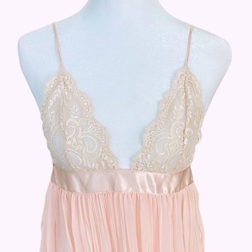Baby doll silhouette Soft pink color Adjustable straps Sheer Girlie Feminine Pit to pit 28 Length 26” Fits a B cup Wear as a dress or lingere