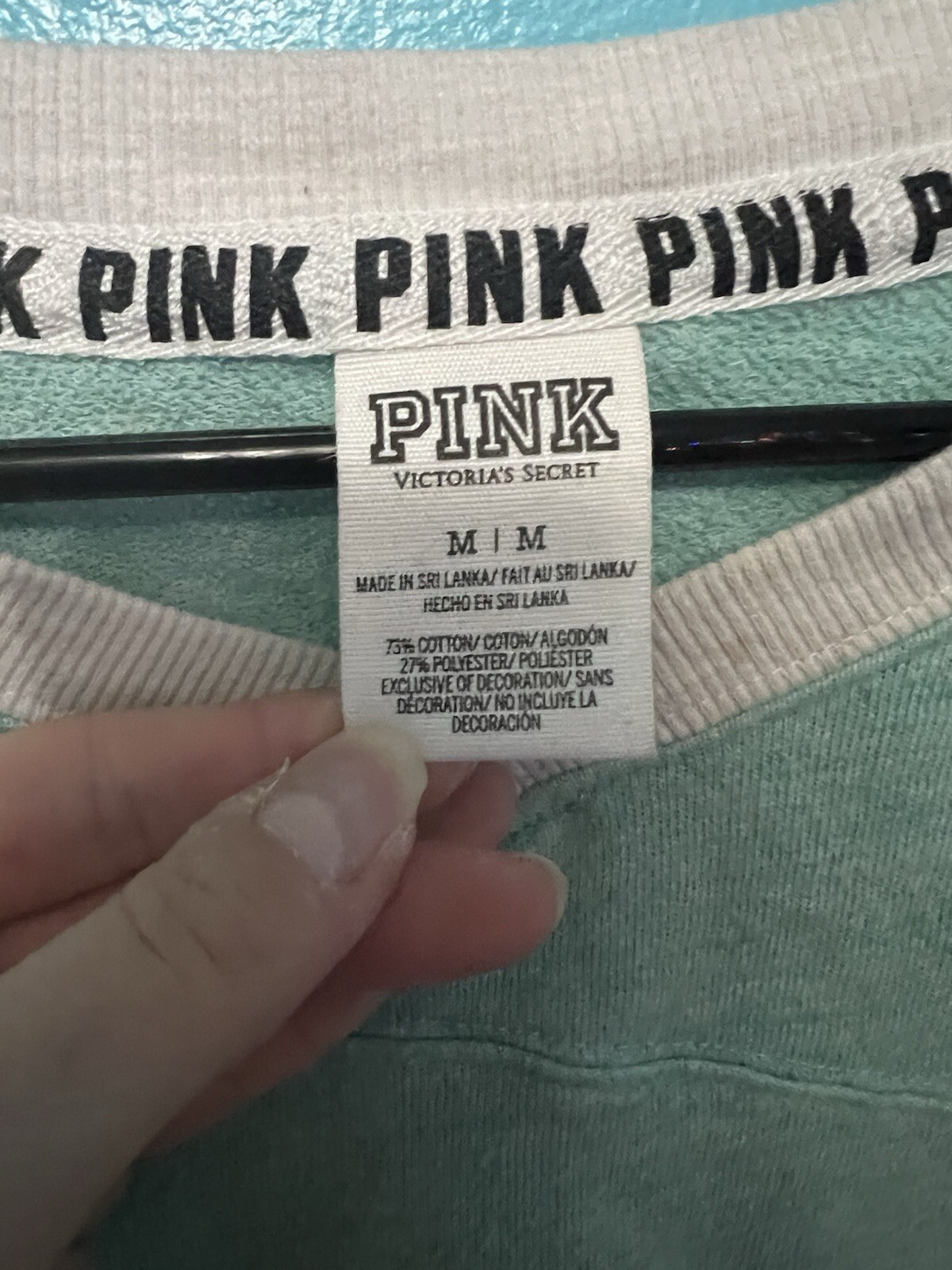 Victoria's Secret PINK Sweatshirt Sz Medium Top Green White Logo Oversized 1024. Condition is Pre-owned. Shipped with USPS Ground Advantage.