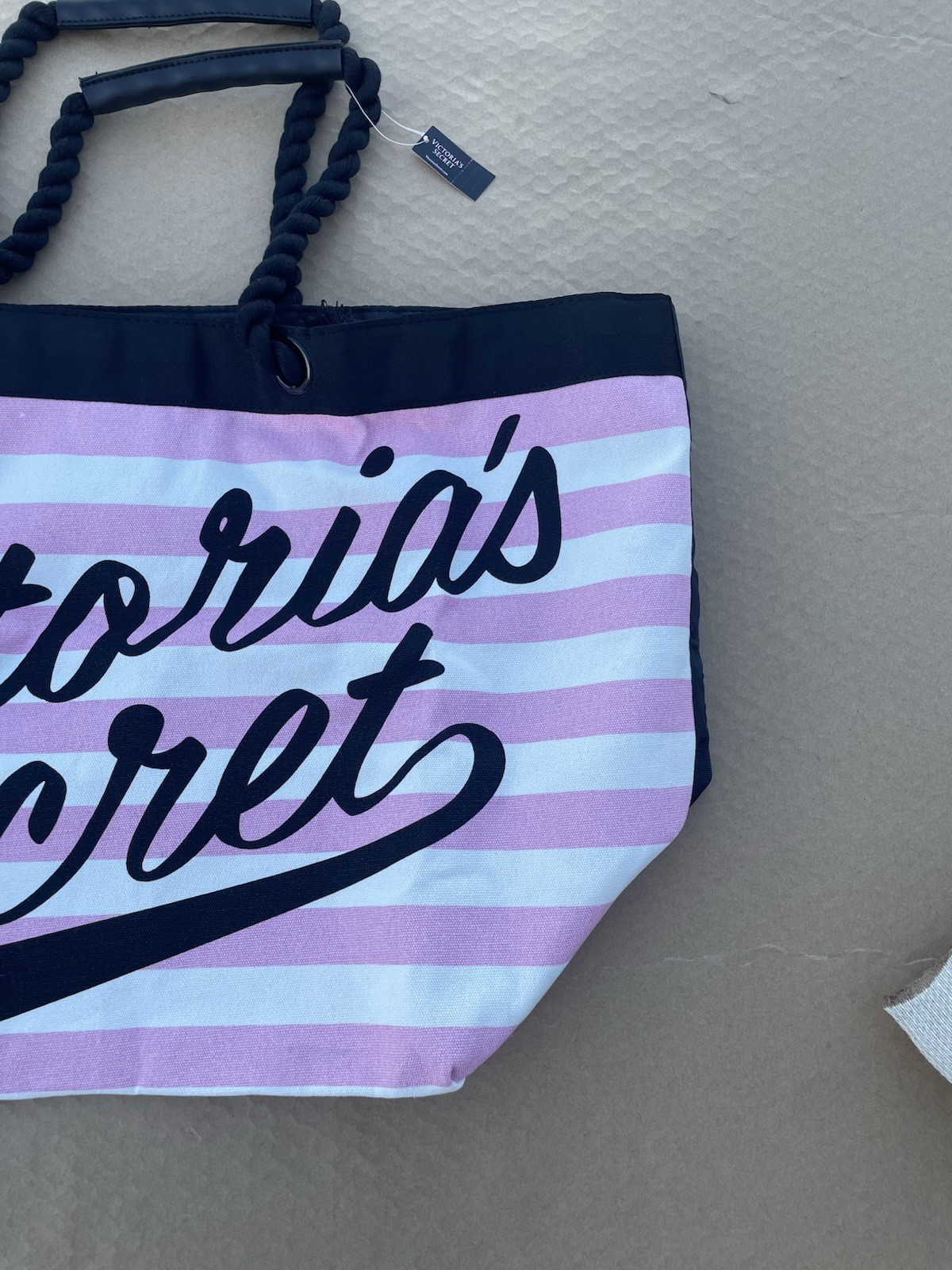 Victoria’s Secret Tote Canvas Bag Pink White Striped Lined Rope Handles New Tag. Condition is New with tags. Shipped with USPS Ground Advantage.
