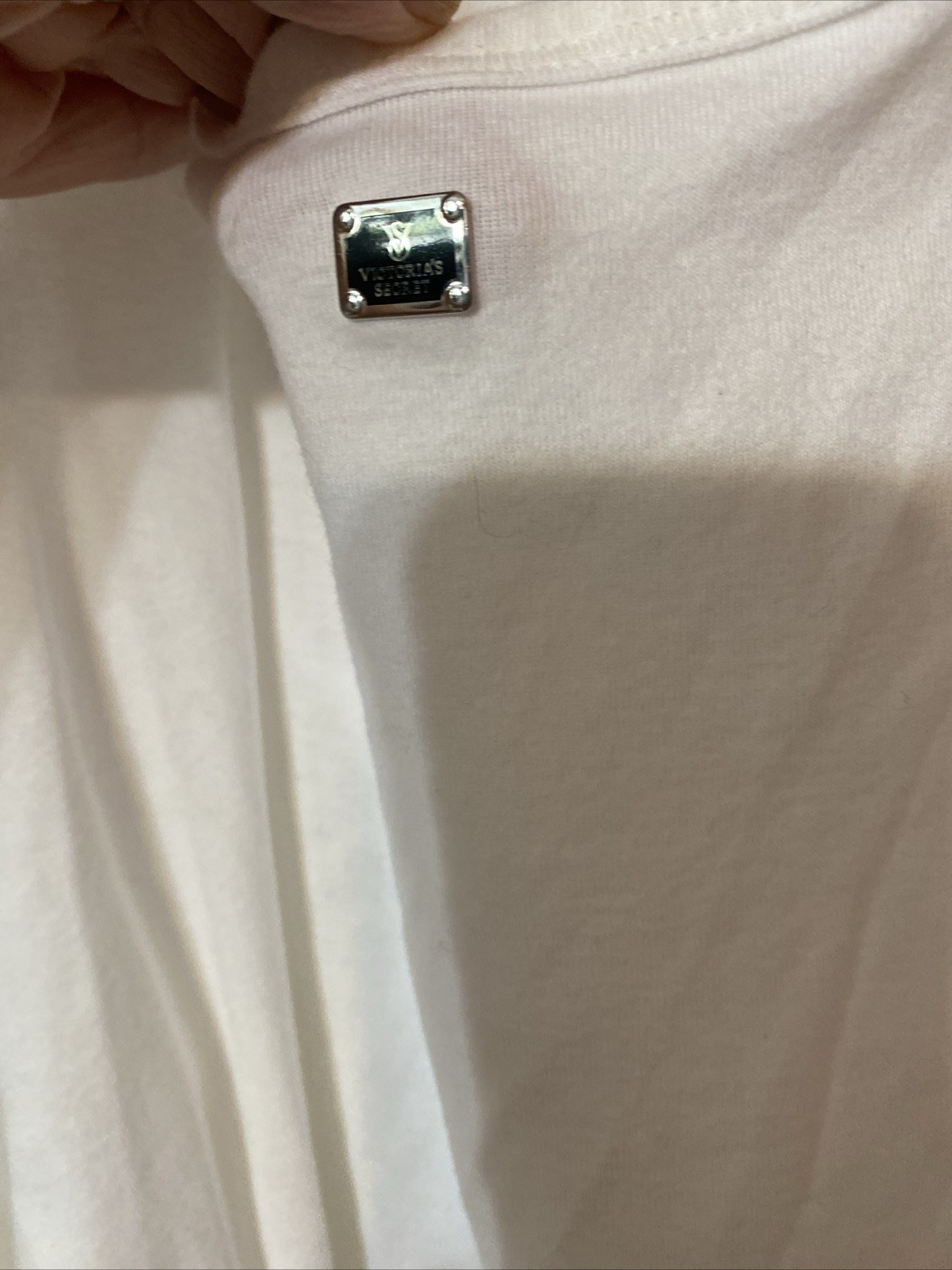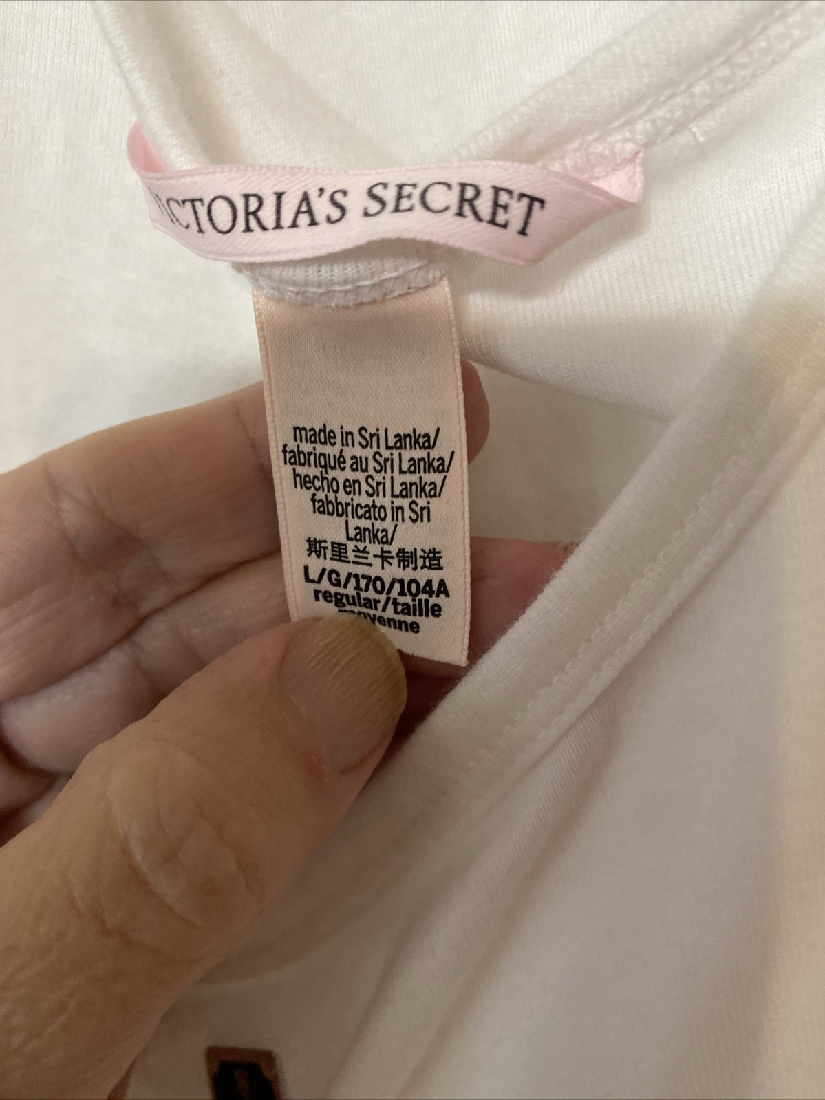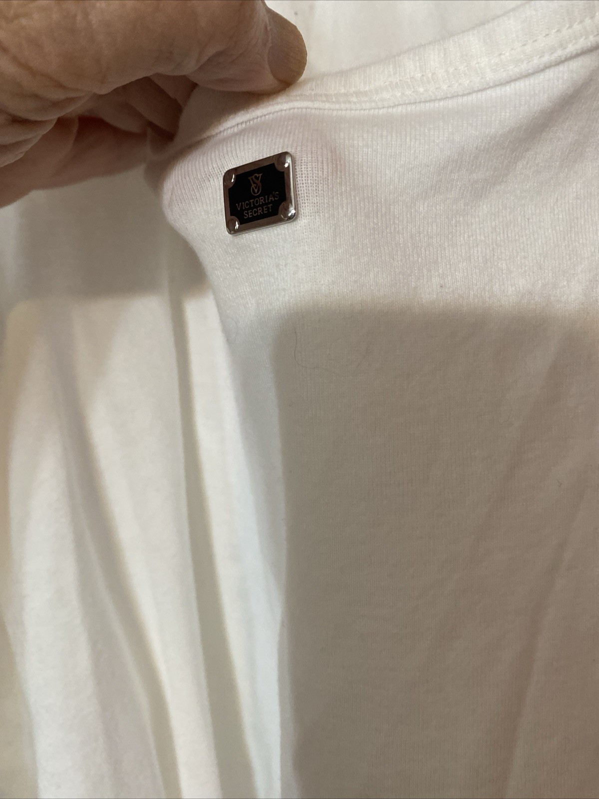 Amazing Victoria’s Secret pj lounge set size large. These are 100% white cotton with a tank top and elastic waist drawstring pants. The waistband has logo inside and has pockets. Both top and pants have metal logos.