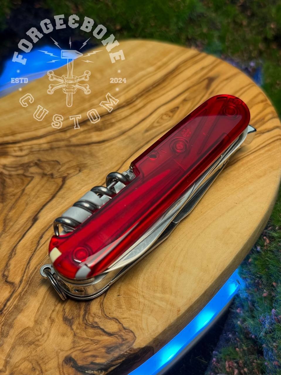 Der Zustand ist neu, mit OVP. Das 91-mm-Victorinox CampFlame wurde nur wenige Jahre lang produziert und ist ziemlich selten. Es verfügt über ein integriertes Butangas-Feuerzeug, das nur in drei Modellen vorkam.