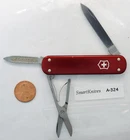 CONDITION: Used. Excellent, grade A condition. Little or no wear on the blade and tools. Everything moves smoothly, with very good snap. Only slight wear on the red smooth aluminum alox scales. A few small nicks and scratches, but the red color is almost 100% intact. This is an early 90s knife with an adjustable screw at the scissors pivot, and a groove on the arm to help guide the spring. MODEL DESCRIPTION: The retired Victorinox Money Clip Swiss Army knife is a basic Swiss Army knife, in a slender 74mm / 3" format. It includes a handy money clip, so you can carry a wad of cash, and have a few extra tools at hand. You can also use the clip to attach the knife to a backpack or clothing. This model has the same tools as the Ambassador knife, but in a very light-weight body, and with the clip. The Victorinox Money Clip knife is 74mm (3") long, 20.5mm (0.8") wide, and 6.5mm (0.27") thick, not counting the clip. It weighs about 28 grams (1.0 oz), and contains the following tools: • Medium Blade • Scissors • Nail File with Cleaner Tip • Money Clip COMBINED SHIPPING: Reduced shipping for multiple items purchased at the same time. eBay usually charges too much for combined items, so we give a partial refund after shipping. Once you pay we must ship within 24 hours. INTERNATIONAL MAIL: eBay does not allow knife shipments to UK or Ireland. We use First Class mail to all other countries that offer delivery confirmation (e-Delcon). DELIVERY TIME: Orders to Canada and Europe usually take about 1 week, depending on time spent in Customs. Other countries may take a month or more to clear Customs. Brazil Customs may take 3 or 4 months! OTHER COUNTRIES: Shipments to countries without e-Delcon must go via Express Mail, UPS, or other tracked services. They are much more expensive. Please contact us for details. INTERNATIONAL TAXES & CUSTOMS DUTIES: Most countries charge 8% to 25% VAT import tax. Orders over $150 may also incur Customs duties. A few countries also add a collection fee. You pay the taxes/fees when you pick up your package (a few countries let you pay it online).