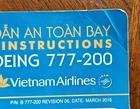 This is a rare, lightly used, tri-fold safety card for the Vietnam Airlines B-777-200 which is dated back to March 2016.. It is in very good condition with no stains, no tears, nothing sticky and no writing on it BUT there are a couple of minor creases on the top right of the cars and some minor wear at the bottom of the card.... Pictured is the aircraft that it came from..