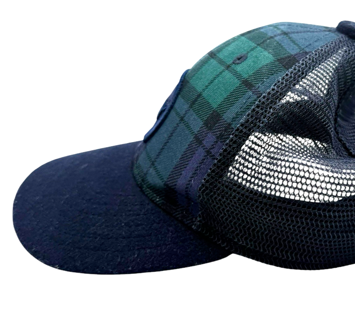 The Hat Vineyard Vines Blue Tartan Plaid Whale Preppy Truckers Snap Back Hats Caps are stylish baseball caps perfect for casual occasions. Made from a blend of polyester, linen, and cotton, they feature a breathable mesh back for added comfort. The classic blue tartan plaid design, along with the brand's logo and preppy theme, adds a touch of sophistication to any outfit. With an adjustable size and snapback closure, these hats are a versatile accessory for men looking to elevate their look.