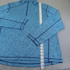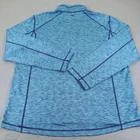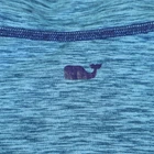 Brand: Vineyard Vines Style: Mens lightweight performance quarter zip sweater/pullover with mock neck and long sleeves. Color: Blue heather with darker blue contrast flatlock seams. Size on tag: Large Materials: 88% polyester, 12% spandex. Made in El Salvador; RN 134578. Details: Vineyard Vines logo text at chest, small whale logo at back neck, stretch performance fabric, curved hem, soft knit interior, designed for athletic or casual wear.