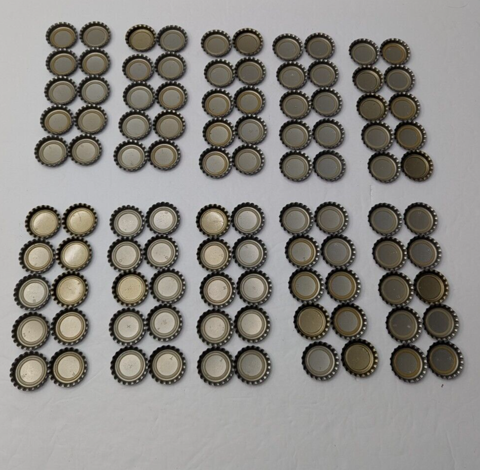 Vintage 100 Silver Coke Coca Cola Bottle Caps -see photos -possibly unused LOT 9 I don't think these caps have ever been place on bottles. See photos for details. Caps can ship with USPS Ground Advantage or USPS Priority Mail. If multiple lots of caps are purchased in the same order, I will gladly Combine Shipping to reduce total shipping cost.