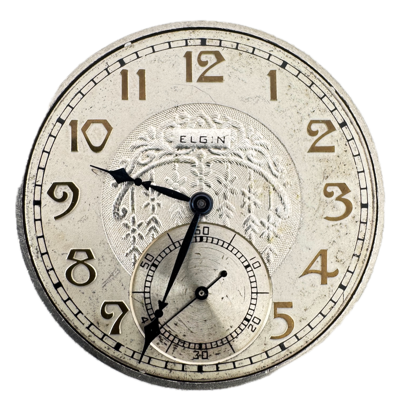 Vintage 12s 1933 Elgin 17 Jewel Mechanical Pocket Watch Movement 345 USA Product Description Item: Pocket Watch Movement Brand: Elgin Movement: Mechanical Production Year: 1933 Country: USA Jewels: 17 Jewel Gender: Men's Grade: 345 Size: 12s Product Measurements Diameter: 40mm Product Condition Overall Condition: Fair, overall condition for its age. Functions: Not running but the balance complete is in good condition. This item has not been fully inspected. Internal components may be damaged or missing. No guarantees are made regarding completeness or functionality of the movement. Dial: The dial has discoloration and spotting.