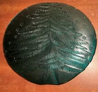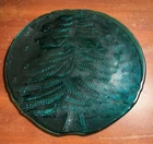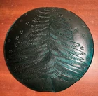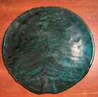 Vintage 14” Green Glass Serving Charger With Debossed Christmas Tree & Stars Please review all pictures carefully as they are part of the description. Questions are welcome.
