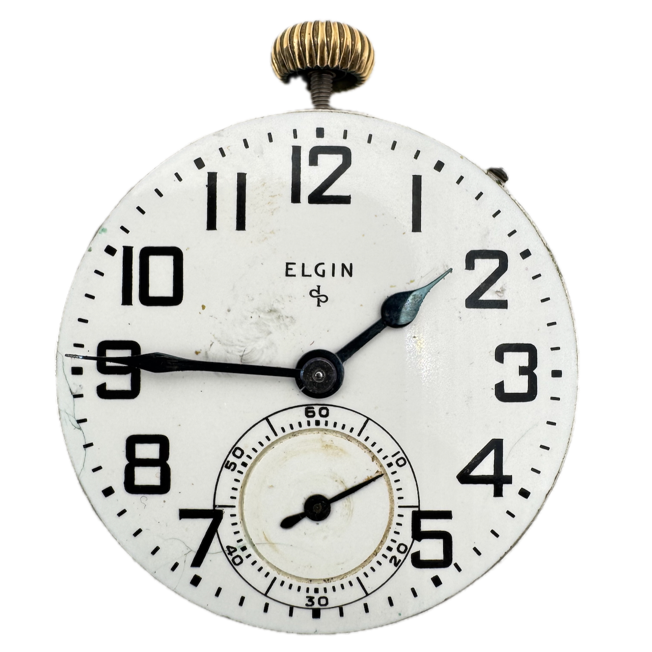 Vintage 16s 1950 Elgin 17 Jewel Mechanical Pocket Watch Movement 573 USA Product Description Item: Pocket Watch Movement Brand: Elgin Movement: Mechanical Production Year: 1950 Country: USA Jewels: 17 Jewel Gender: Men's Grade: 573 Size: 16s Product Measurements Diameter: 43mm Product Condition Overall Condition: Fair, overall condition for its age. Functions: Running, but may be in need of service. This means, it can run unreliably, start or stop and timekeeping is not guaranteed. Dial: The dial has hairline crack(s) on it. Hands: The hands have rust on them.