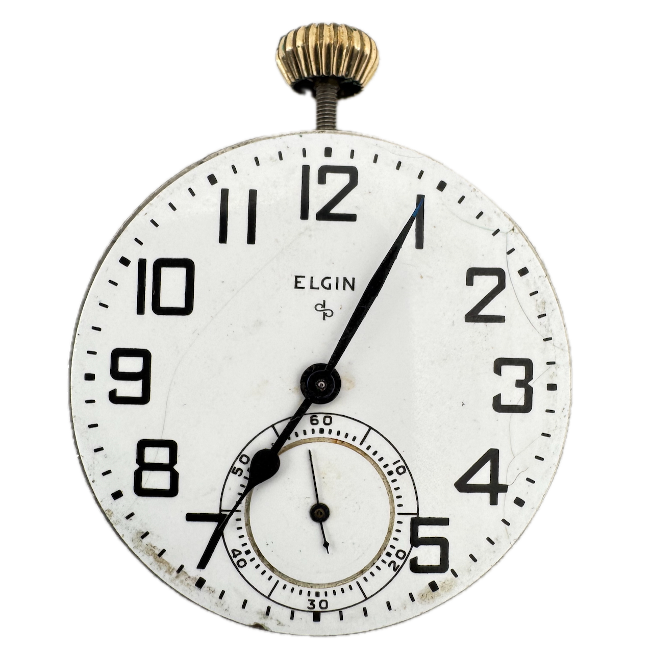 Vintage 16s 1951 Elgin 17 Jewel Mechanical Pocket Watch Movement 616 USA Product Description Item: Pocket Watch Movement Brand: Elgin Movement: Mechanical Production Year: 1951 Country: USA Jewels: 17 Jewel Gender: Men's Grade: 616 Size: 16s Product Measurements Diameter: 43mm Product Condition Overall Condition: Fair, overall condition for its age. Functions: Running, but may be in need of service. This means, it can run unreliably, start or stop and timekeeping is not guaranteed. Dial: The dial has hairline crack(s) on it.