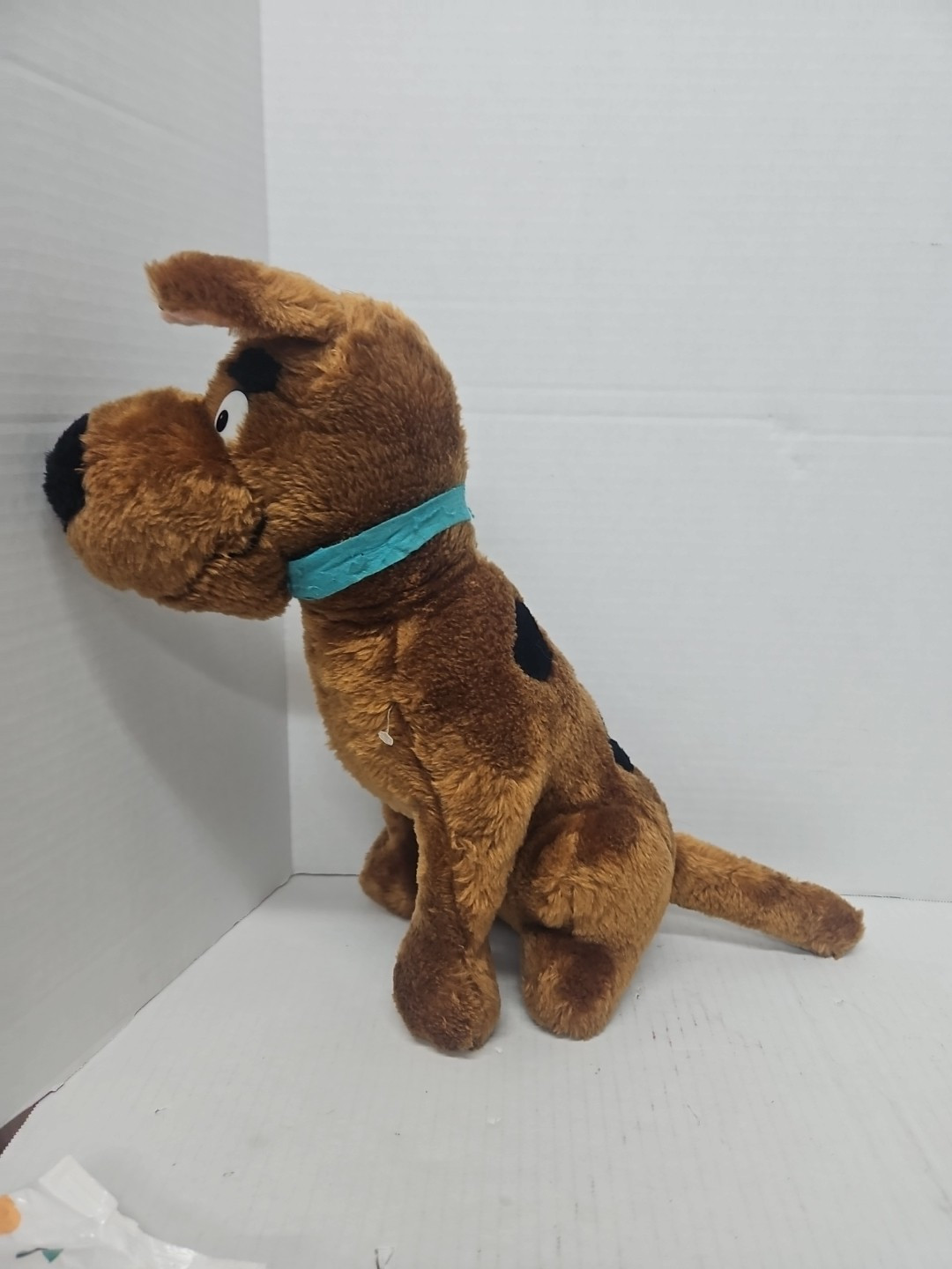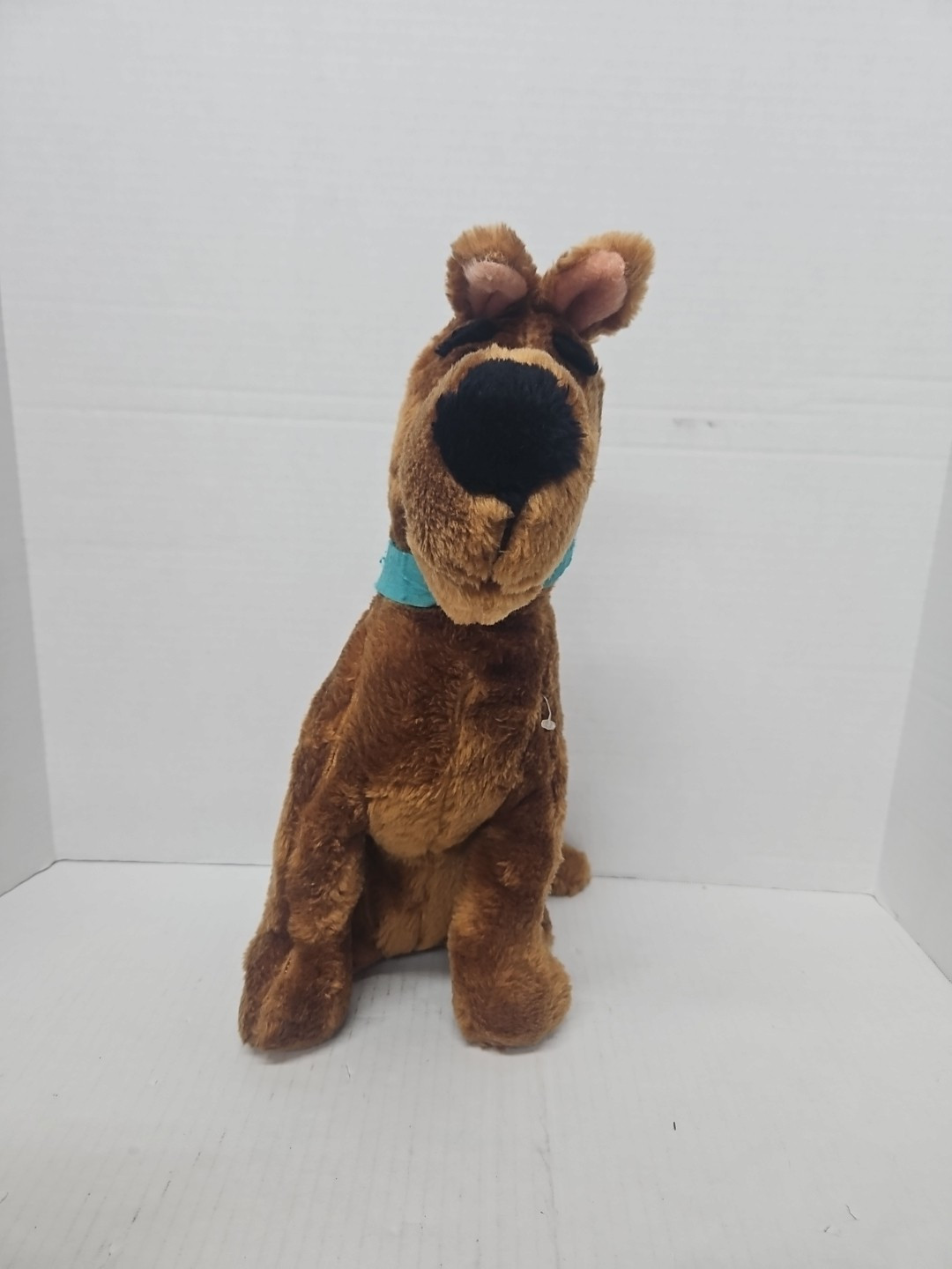 Embark on a nostalgic journey with the vintage 17" Scooby-Doo plush, a classic collectible that captures the spirit of the beloved Hanna-Barbera animation. Crafted by Mighty Star in 1980, this plush rendition embodies the mystery and adventure of the iconic character, Scooby-Doo, with its rich brown color and comforting plush material. Ideal for fans and collectors, this Scooby-Doo stuffed animal, made in the United States, is a testament to timeless animation themes and franchises. It's a charming piece that not only pays homage to the Scooby-Doo TV show but also brings a touch of animation history into your collection.