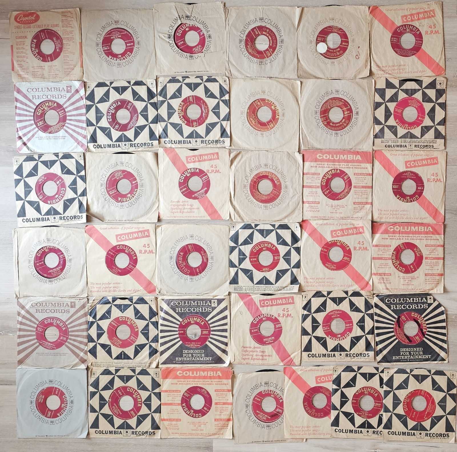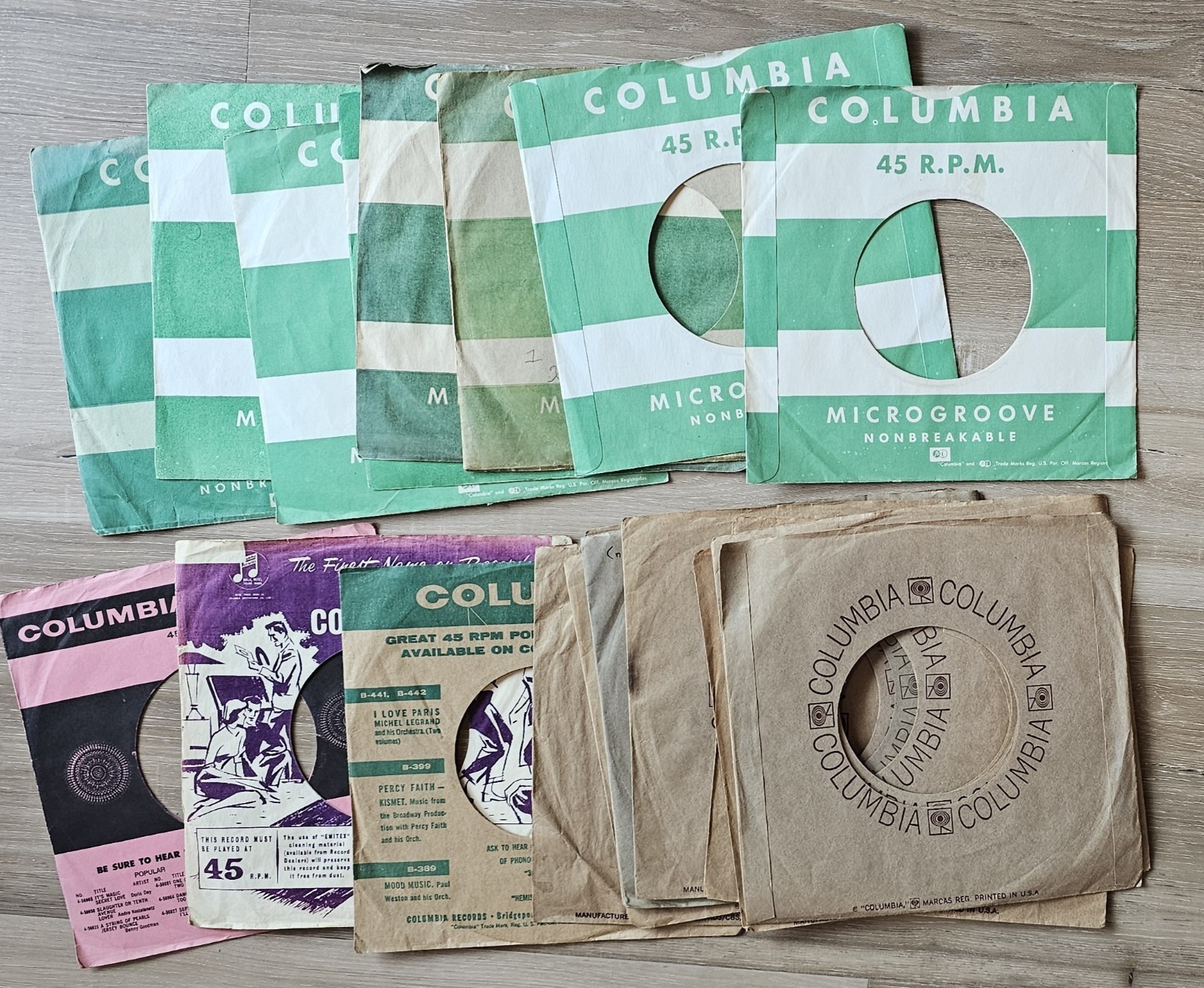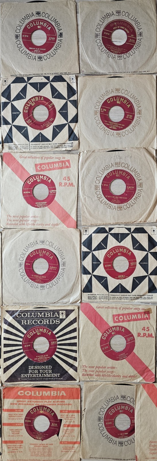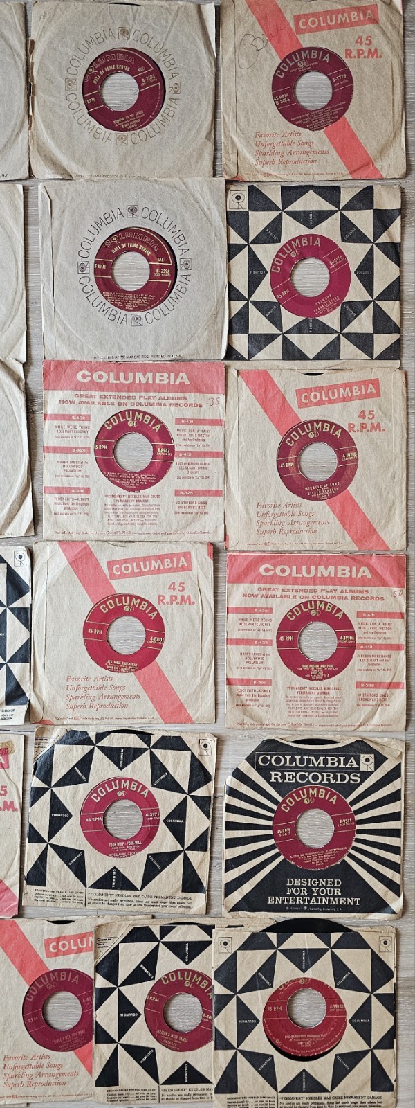 1960s Columbia Records Lot of 20 45 RPM Vinyl Records with 50 Sleeves VG-EXMT Condition #3