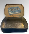 Estate item. It is quite old so there is some rust (please see photos), but the hinges work and there are no dents. It measures 4.5” x just over 3” x 1” The tin features a picture to commemorate the marriage of the Belgian king Badouin and Fabiol