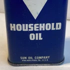 This vintage 1960 Sunoco household tin litho gas pump oil can is a great addition to any collection. With a capacity of 4 oz, it is perfect for storing and displaying. The colorful multi-color design and original Sunoil branding make it a unique piece of gas and oil advertising. Made in the United States, this original and authentic collectible is a must-have for any gas and oil memorabilia enthusiast. The can is in great shape and ready to be displayed in your collection. Add it to your merchandise and memorabilia collection today!
