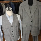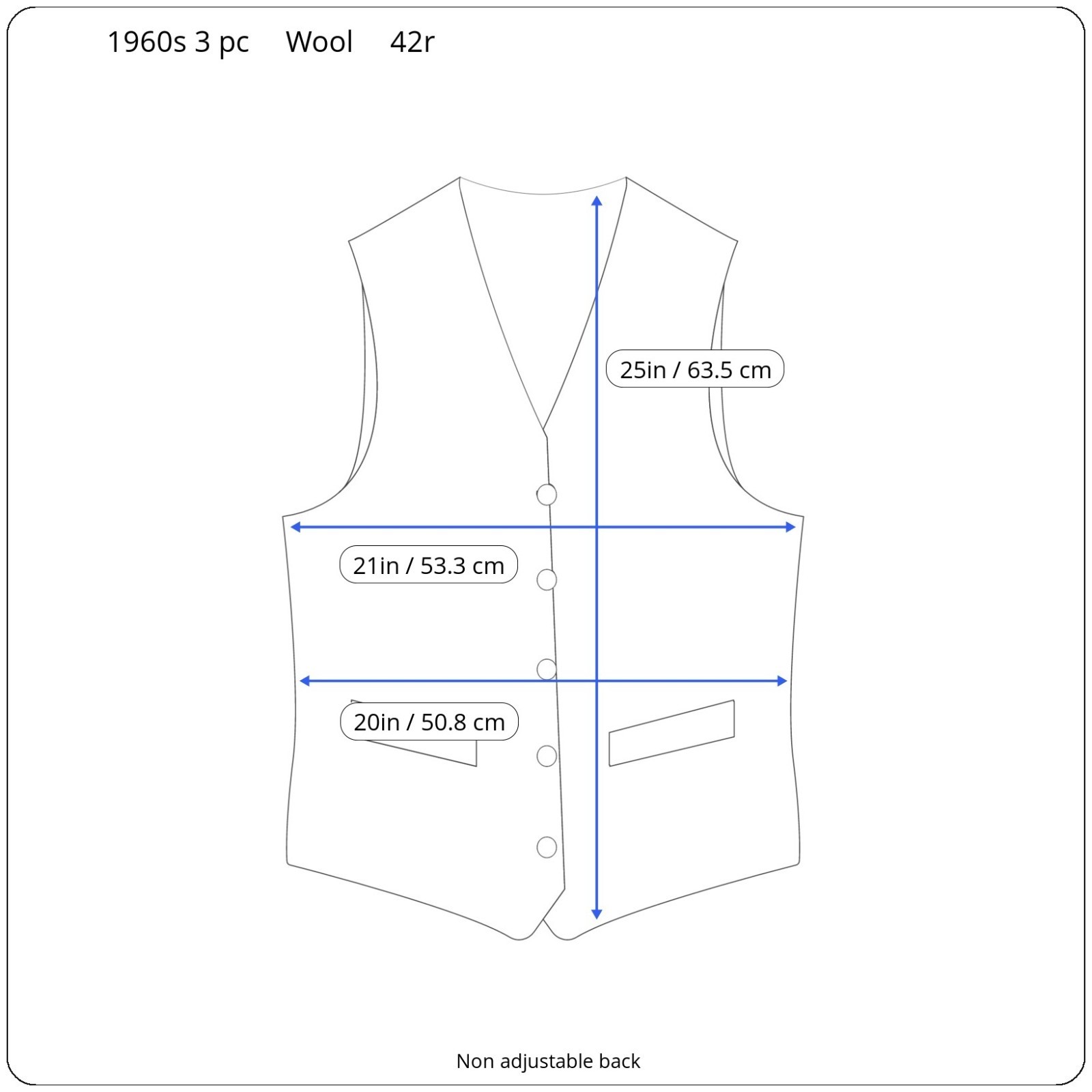 *** unique measurements, please see photos #2 and #3 *** Size:measures as a 42r USA with 22 4-inch arm length and a *** jacket length of 32 inches.*** Pictured on a size 42 mannequin Pants: 33x30 For complete measurements, see photos #2, #3, and #4 To see exactly how we measured, see the last series of photos. Extra fabric for adjustments: Waist: 3 inches Inseam: 3 inches Arms: 2 inches Color: glen plaid with blue and red veins / prince of wales Condition: excellent vintage condition. No holes. No snags. No smells, no stains, no holes, no real flaws found. Flare leg, medium shoulder pads, 1960s tailored wool, 5 inch wide lapel, single vent, flat front, 32 inch jacket length with 24 inch arm length, midweight wool cloth Return policy: We offer free shipping and no returns. We can not afford to offer both in the highest return category on eBay. It becomes very expensive to mail out items for free for people to try on if they are not confident in checking the measurements in picture #2. If you prefer to have the ability to return the item and pay $12.95 shipping, please send us a message, and we can change the listing format to offer returns. The $12.95 shipping cost would break us out even in the case you needed to return the item. You must contact us before purchasing as some of our items are on consignment and we will need to get the owners approval before proceeding. We ship the next business day after the payment is made