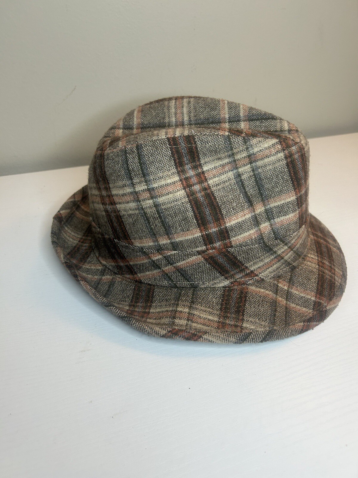 Vintage Men’s Brown Wool Fedora Hat 7 1/8 Made in USA Plaid 1960’s
