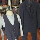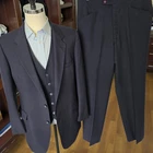 Size: 43L USA with 25-inch arm length and a jacket length of 32 inches. Pants: 36x31 For complete measurements, see photos #2, #3, and #4 To see exactly how we measured, see the last series of photos. Extra fabric for adjustments: Waist: 3 inches Inseam: 3 inches Arms: 1 inch Condition: excellent vintage condition. No flaws were found. Garment bag included, Tailored so No size tags or material tags Midweight, textured polyester, medium shoulder pads, single vent, vintage 1970s Return policy: We offer free shipping and no returns. We can not afford to offer both in the highest return category on eBay. It becomes very expensive to mail out items for free for people to try on if they are not confident in checking the measurements in picture #2. If you prefer to have the ability to return the item and pay $12.95 shipping, please send us a message, and we can change the listing format to offer returns. The $12.95 shipping cost would break us out even in the case you needed to return the item. We ship the next business day after the payment is made.