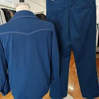 Size: 40-42r USA with 24-inch arm length and a jacket length of 29 inches. Pictured on a size 4p mannequin Pants: 34x30 flare leg For complete measurements, see photos #2 and #3 To see exactly how we measured, see the last series of photos. Extra fabric for adjustments: Waist: 2 inches Inseam: 2 inches Arms: 1 inch Color and fabric: bold blue double knit polyesyer Condition: good 1970s condition. No major flaws were found. No holes. No snags. No smells. No major stains. Wide dagger collar, flare leg, light shoulder pads, flat front, uncuffed Return policy: We offer free shipping and no returns. We can not afford to offer both in the highest return category on eBay. It becomes very expensive to mail out items for free for people to try on if they are not confident in checking the measurements in picture #2. If you prefer to have the ability to return the item and pay $12.95 shipping, please send us a message, and we can change the listing format to offer returns. The $12.95 shipping cost would break us out even in the case you needed to return the item. You must contact us before purchasing as some of our items are on consignment and we will need to get the owners approval before proceeding. We ship the next business day after the payment is made. A discounted, expedited shipping option is available at checkout. If you need help figuring out how to buy a blazer or suit on ebay that actually fits you properly. There are some fantastic videos on You tub e