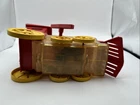 Vintage 1974 Ideal Toys Lil Toot Wind Up Whistling Train Pre-owned. Some discoloration, dirt, part of front broken as shown. Wind up works, didn't hear a "whistle". See pictures.