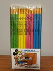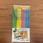 Walt Disney World 1978 Pencils 12 Pack Made In Japan Mickey Mouse Vintage Pencil Set Colors : Green, Blue, Yellow, Pink Shows Mickey Mouse using a pencil at his desk 7.5" in Length Stock number B73 V Condition is New ( Old Stock)