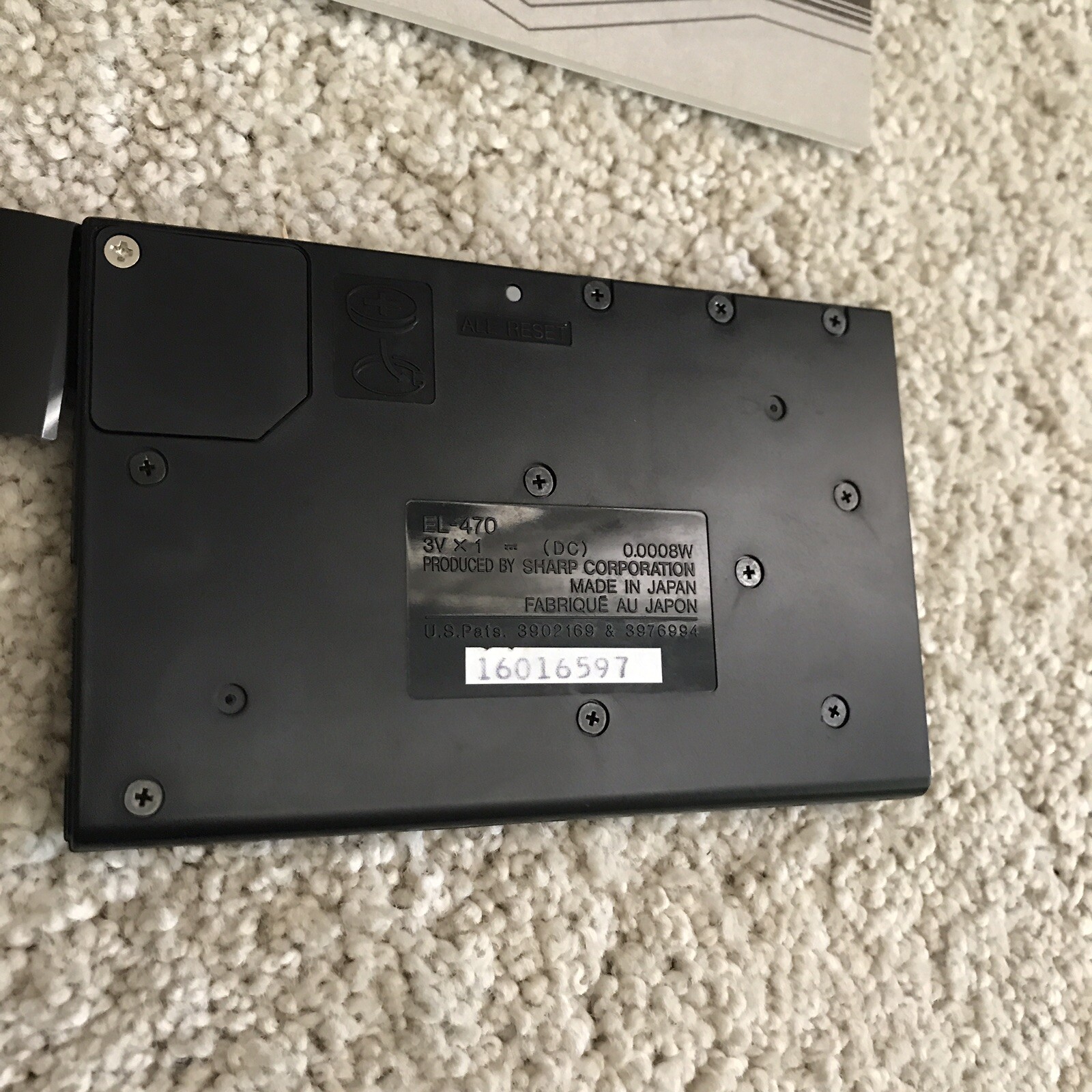 SHARP Calculator EL-470 Travel Clock Currency Conversion Vintage 1980's. It has not been used, as the original battery tab is still in place. It will need a new battery. Free first class shipping in a bubble mailer.