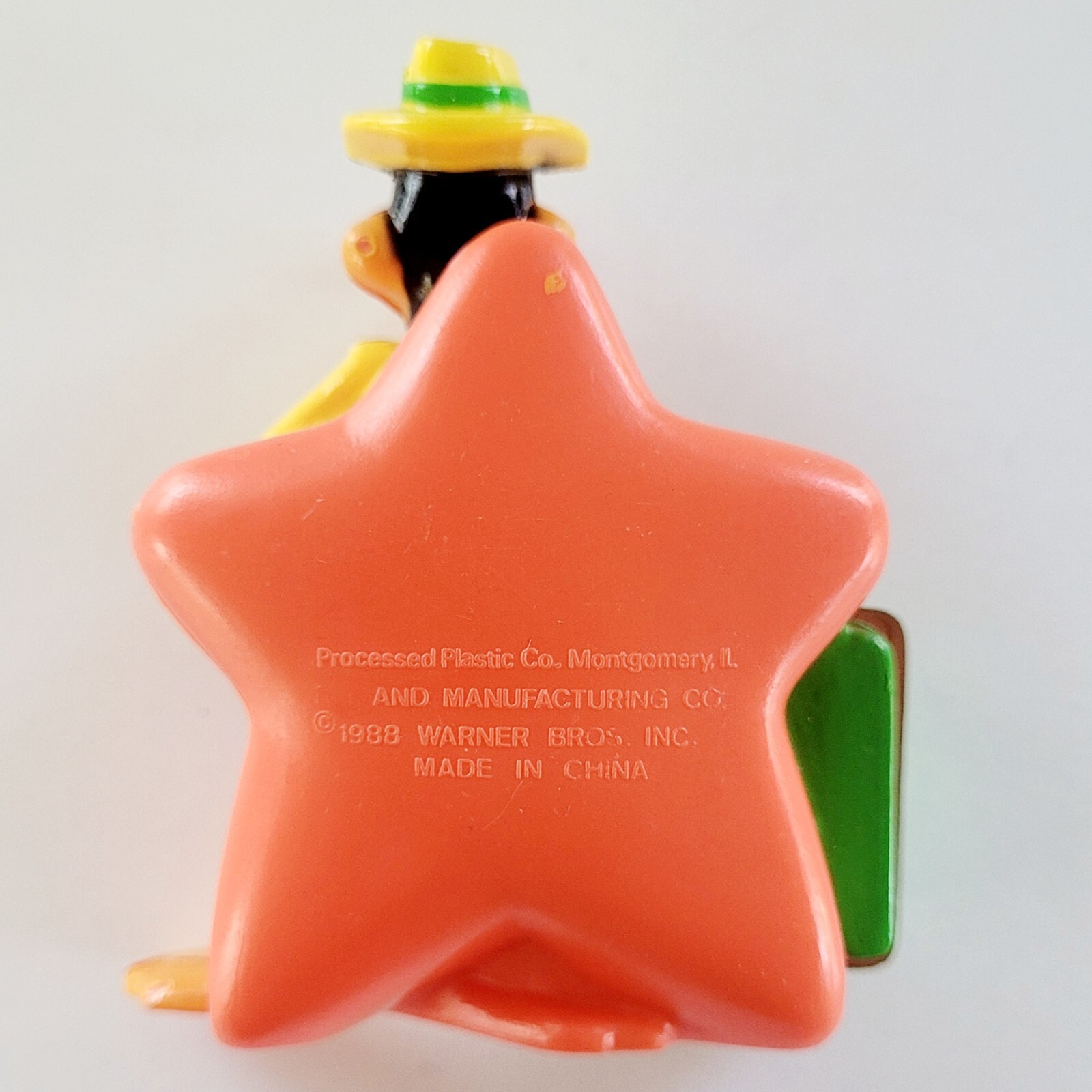 The Vintage 1988 Warner Bros. Looney Tunes Gumball Pocket Pack Daffy Duck Dispenser is a collectible item featuring the iconic character Daffy Duck from the Looney Tunes franchise. Manufactured in 1988 by Warner Bros., this multicolored dispenser is a nostalgic piece of animation merchandise that would make a great addition to any fan's collection. Made in China, this item showcases the beloved character in a unique and playful way, perfect for fans of classic animation.