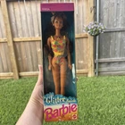 The Vintage 1992 Mattel Barbie “Glitter Beach Teresa” #4921 is a collectible fashion doll from the Barbie franchise. This 11.5-inch doll features brown hair, green eyes, and comes with accessories like earrings, necklace, hair brush, swimsuit, and hairtie. Manufactured in Malaysia in the 1990s, this original Barbie doll is a part of the Glitter Beach product line, making it a sought-after piece for collectors and fans of vintage Barbie dolls.