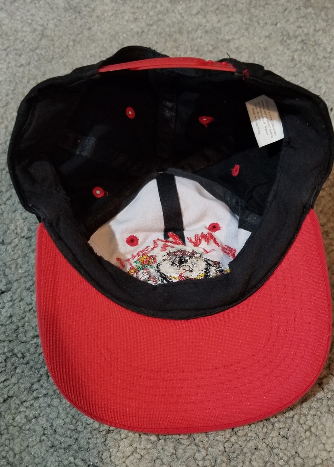 Cap off your look with a touch of nostalgia in the Vintage 1995 Looney Tunes Taz "Be My Valentine" Snapback Hat. Featuring the beloved Tazmanian Devil, this hat is a playful nod to classic animation and a must-have for any '90s enthusiast. The solid black color and adjustable snapback ensure a comfortable and versatile fit for all, while the vintage charm makes it a unique statement piece. Crafted with care, this hat brings together timeless style and function. Whether you're out for a casual day or adding to your collection of vintage finds, the hat's durable construction and classic design reflect the quality and spirit of the Looney Tunes brand. Embrace the whimsy of the past with this charming accessory.
