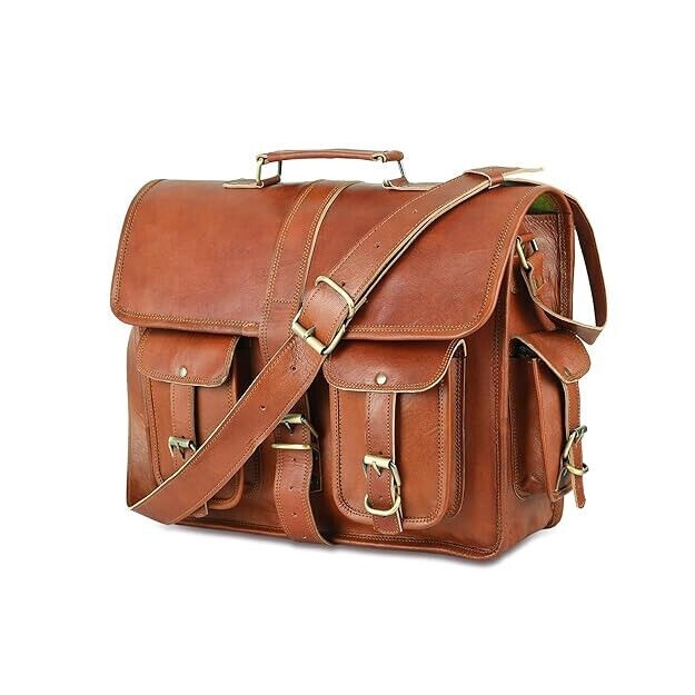 leather laptop backpack Vintage Brown Messenger Bag Shoulder Laptop Bag Item Title Men's Leather Messenger Satchel Shoulder Briefcase Business Bag - Leather Bags Item Description Men's Leather Messenger Satchel Shoulder Briefcase Business Bag - Leather Bags Best Product in Leather Bags Descriptions: 100% genuine goat leather messenger bag with a durable inner lining made of canvas. A genuine hand made product using Natural leather. Natural oils and light have been used to obtain the style of the leather - chemical free! This bag features a wonderful unique and vintage look, designed to carry mini laptops, tab, documents, personal belongings etc. Perfect for the office, school or as a gift! Specifications: Made from 100% genuine, strong, lightweight, durable goat leather, tanned without the use of chemicals Adjustable shoulder strap, half flap bag with strap lock & 2 small front pocket. big inner compartment for carrying files, mini laptop's, tab's etc. 2 zipper compartments for important documents/paperwork etc. Inner canvas lining Vintage leather wash Leather softens and darkens with use Handmade in India by experienced craftspeople Size: 15" Wide X 11" Long X 5" Deep Item Description:- Material- Real Goat hide ( sustained ) Size- 11"(L), 15"(W), 5"(D) 2 Front pockets, handle on top. Total 4 compartments inside with green color strong canvas lining. 54" long adjustable shoulder broad strap. Real Brass metal accessories used in this Bag. Made by professional and experienced artisans from Rajasthan. Treated by natural ingredients. Natural leather smell will go away within few days from the usage of this bag. Eco friendly Payment Policy We only accept PAYPAL. Payment is to be completed within 3 days of the purchase. Please contact us if you can't make the payment promptly. Otherwise, we will reserve the right to re-list the item and the unpaid item report will be made correspondingly. Shipping Policy We normally ship within 3-4 days after receiving payment. We will offer the tracking no. u can track it during the whole shipping process. After shipment please check your tracking number after 3 to 4 days and please contact us in any query regarding your package as soonest. Please do provide your Full Address and Phone Number by eBay message immediately after making the payment for easy delivery. Please provide your telephone number as well, so that the post office can contact you when your item arrives, or the item will be sent back to us. We will not be able to resend the item in that case so please make sure to provide your contact number. Returns Policy In case of return of the goods, buyer has to borne the shipping charges. Customs duties and other duties levies in destination country are responsibility of the customer. We will exchange the item if returned to us within 14 days of original packing. The item should not be used. No alterations Must be Done to Item. Otherwise We won't take it Back. Buyer Must Inform within Two days after Getting the product about any Issues with the Item. Terms & Conditions There may be Color variation due to difference in resolution of the photo & the actual color. Please clarify all your doubts before buying. In case the item is out of stock your entire amount will be refunded via the same way the payment was made. All winning bids / store purchases are a firm commitment to purchase and you are obligated to complete the transaction. By purchasing/bidding on an item you agree to be bound by the conditions of sale included in the item's description. Offer price is for per piece. We use standard shipping carriers for national & international shipping. Customers are required to provide full & accurate information at the time of order. Feedback Please help us maintain a 5 Star DSR rating in all 4 rating categories, if you feel otherwise, please let us know how we can score a perfect rating from you before you rate us. Please do not leave a negative feedback as a way to communicate. Any rating given to a seller can neither be changed nor modified. So better communicate for faster resolution to any disputes. If you have any concerns regarding your purchase, please contact us via phone or mail, we assure you that a satisfactory resolution will be reached