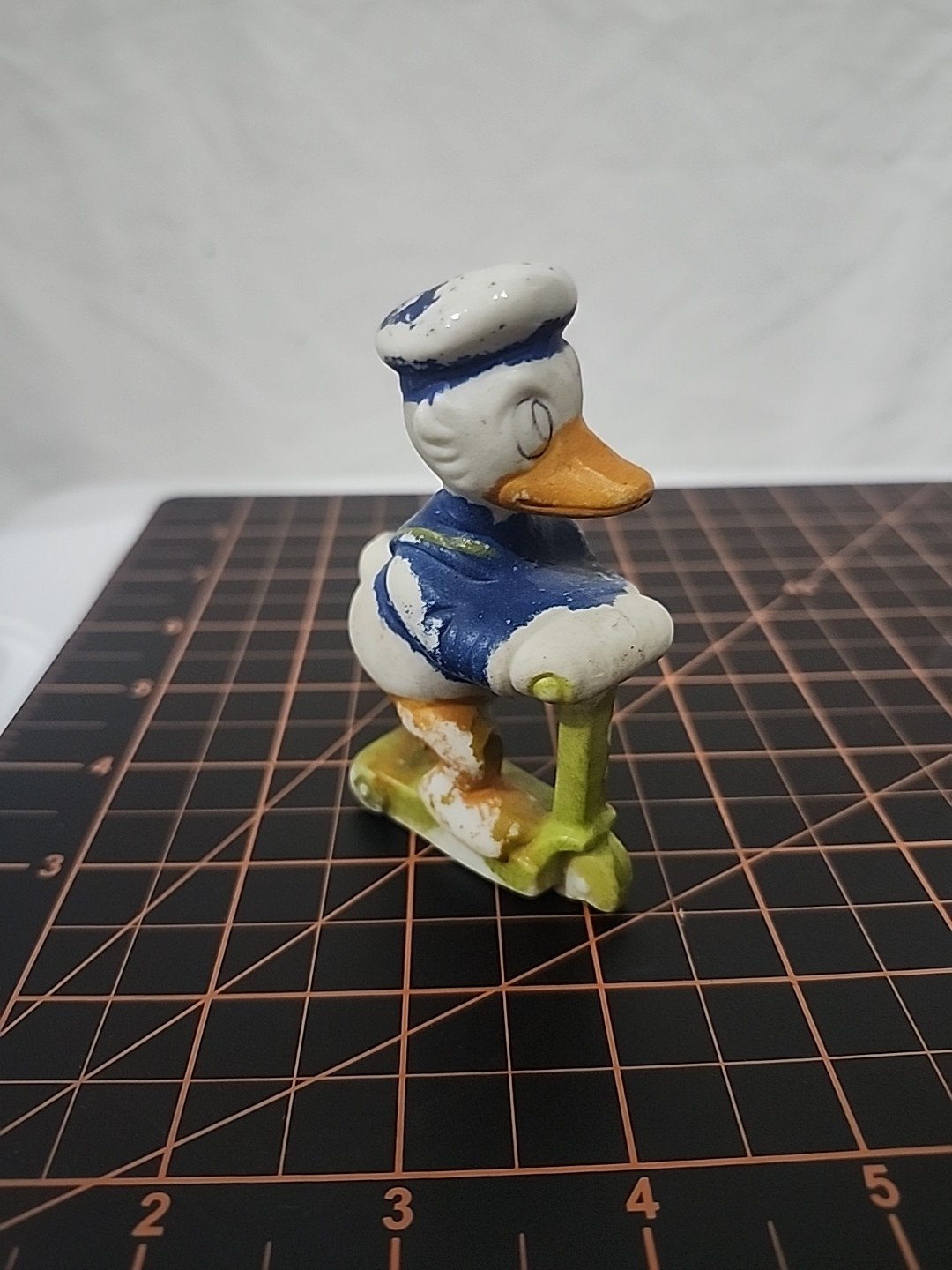 Vintage Walt Disney Donald Duck on a Green Scooter Bisque 3.5" figurine