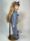 Vintage Porcelain Doll in Footed Baby Blue Onesie Pajamas with Teddy Bear She has blue pajamas on with a brown teddy bear Bow headband in hair Easy to hand wash Stand is adjustable Super unique and rare!! Collectible Comes with metal/wooden stand! Hand made in China Height/length: 16.5” on stand Arm to arm: 10.5” Stand base diameter: 5” #vintagedoll #vintageporcelaindoll #teddybeardoll #porcelaingirldoll #vintageporcelaingirldoll #porcelainpajamadoll #porcelaindoll #handmadedoll #handmadeporcelaindoll #american #americanclassic #americanclassicdoll