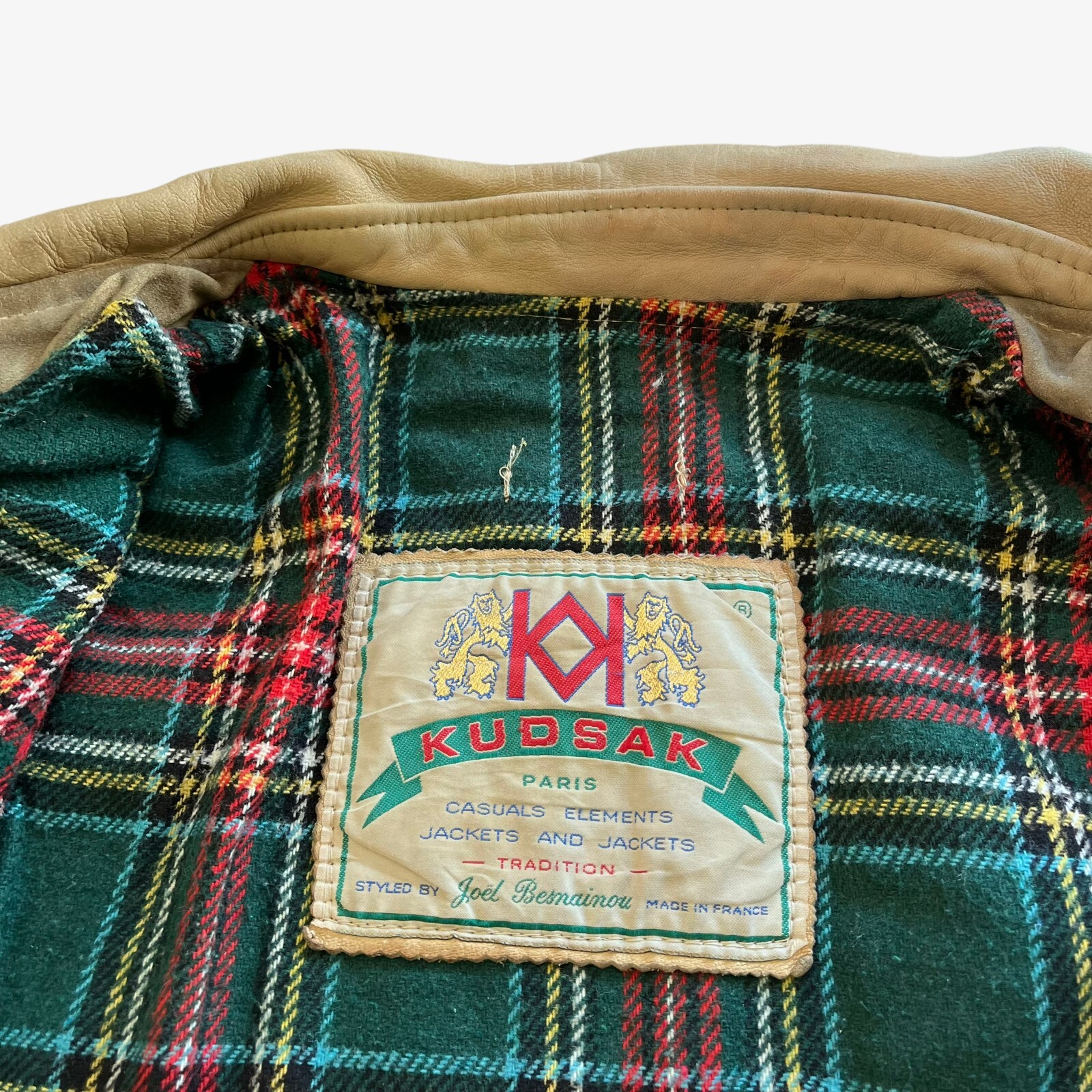 £65 On Casspio's Dream Vintage Vintage 80s Men's Kudsak Leather Varsity Jacket With Back Printed Spell Out. Printed Crest Oversized Fit Letterman Retro Size Label: No Size Label Our Size: L Measurements: Pit to pit: 25.25 inches Nape of neck to hem: 25.25 inches Condition: Fair. Signs Of Wear Around The Item.