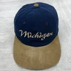 Vintage 80s university of Michigan Wolverines tan navy crazy cool embroidered suede hat cap strap back NCAA college sportswear streetwear boho retro Size: one size